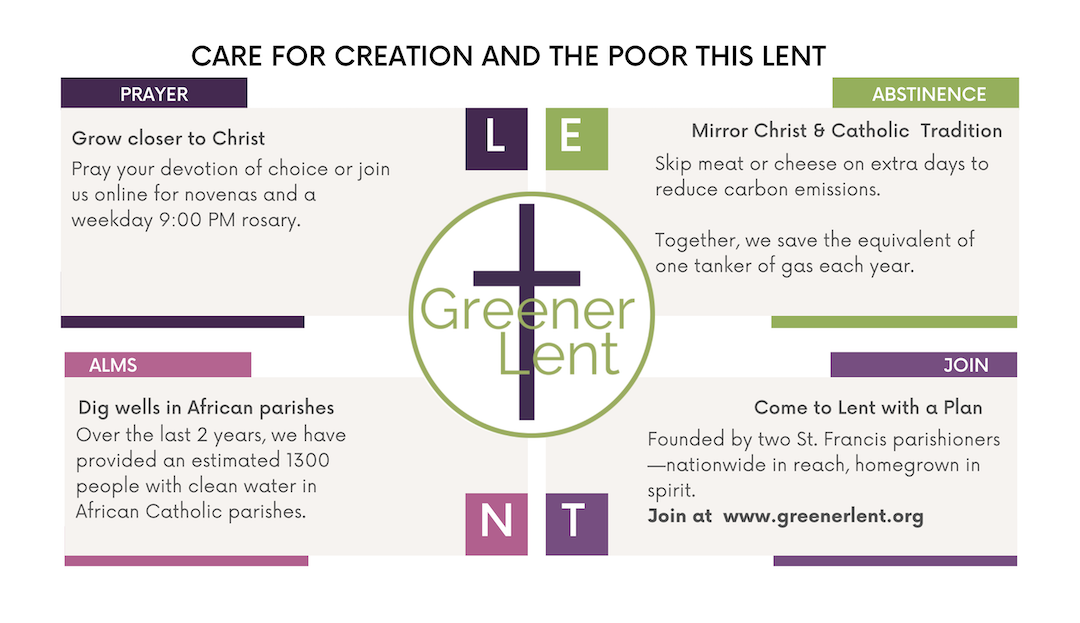 In keeping with Catholic Lenten tradition, participants reduce consumption of meat, pray, and give alms. Each year, Greener Lent saves the carbon equivalent of a tanker of gasoline, inspires thousands of prayers, and has helped provide clean water to 1,300 Catholics in sub-Saharan Africa over the past two years.