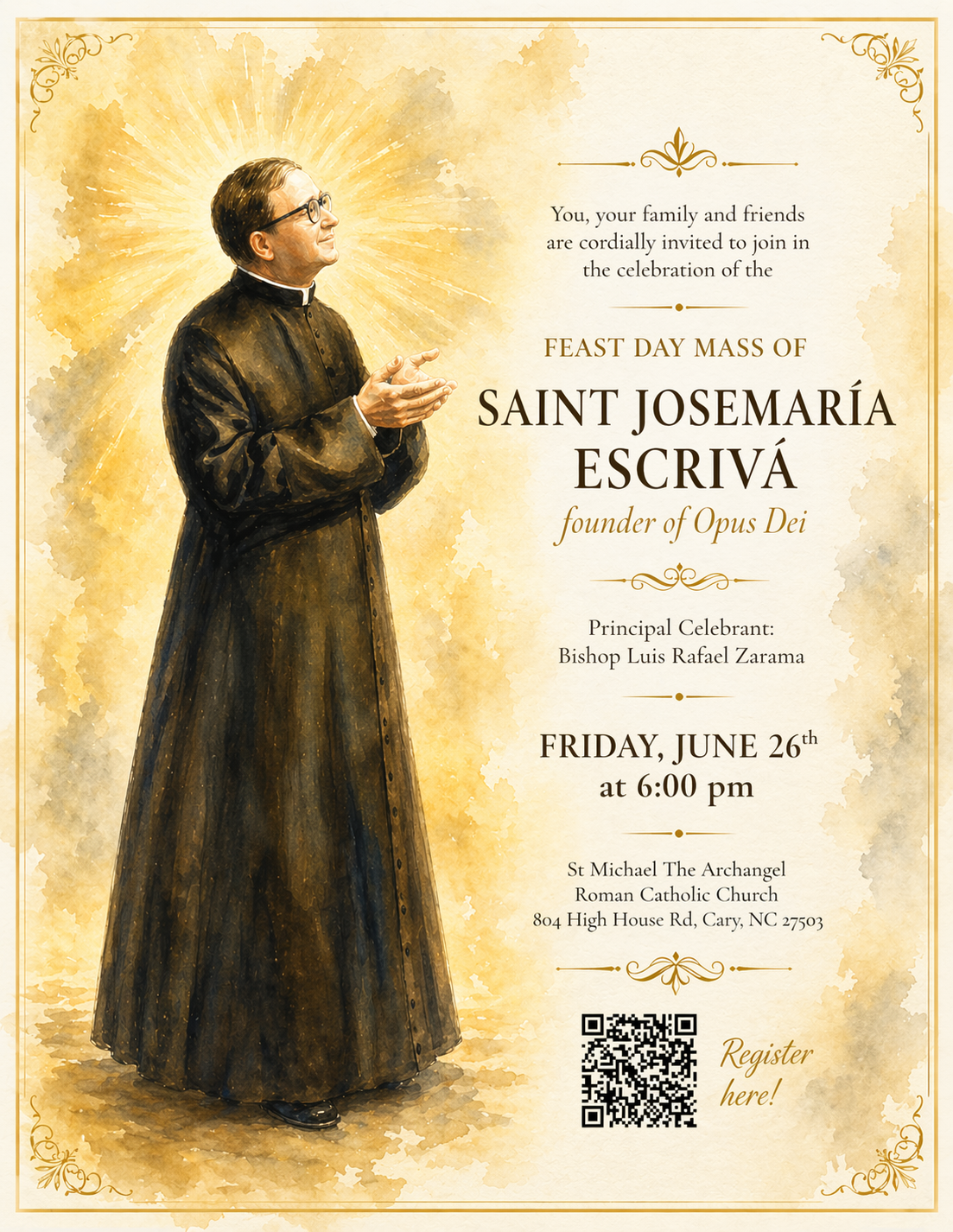 - Location: St. Michael The Archangel Roman Catholic Church, 804 High House Rd, Cary, NC 27503