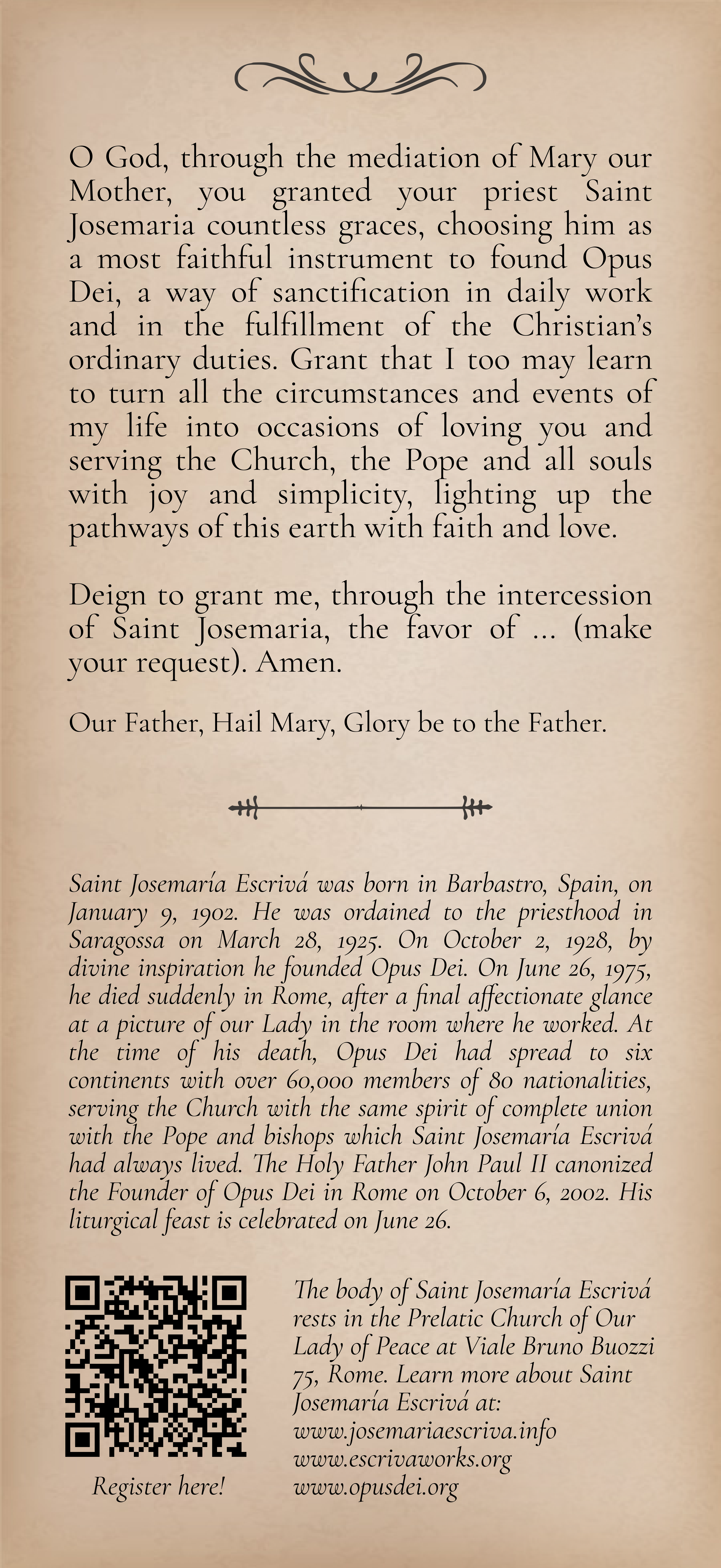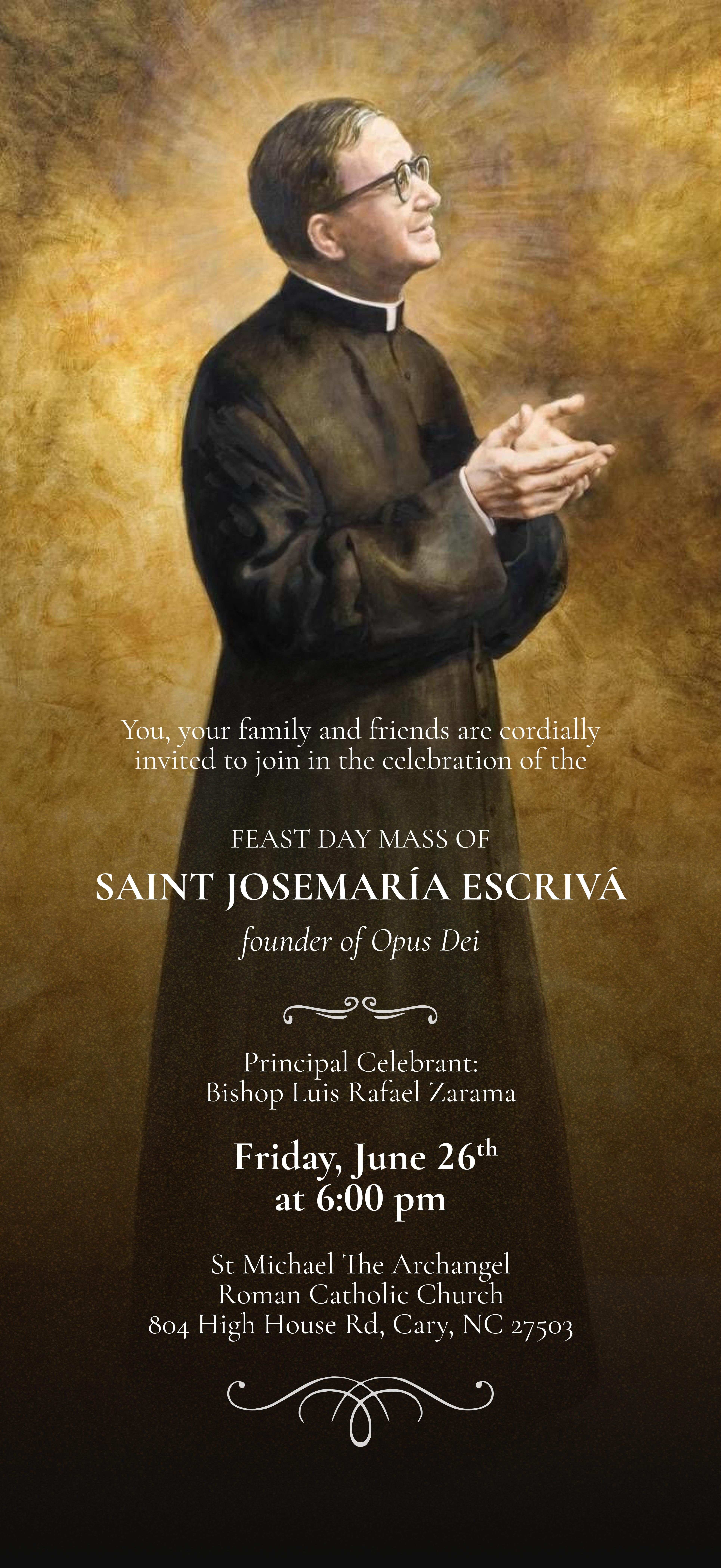 You, your family and friends are cordially invited to join in the celebration of the Feast Day Mass of Saint Josemaría Escrivá, founder of Opus Dei.