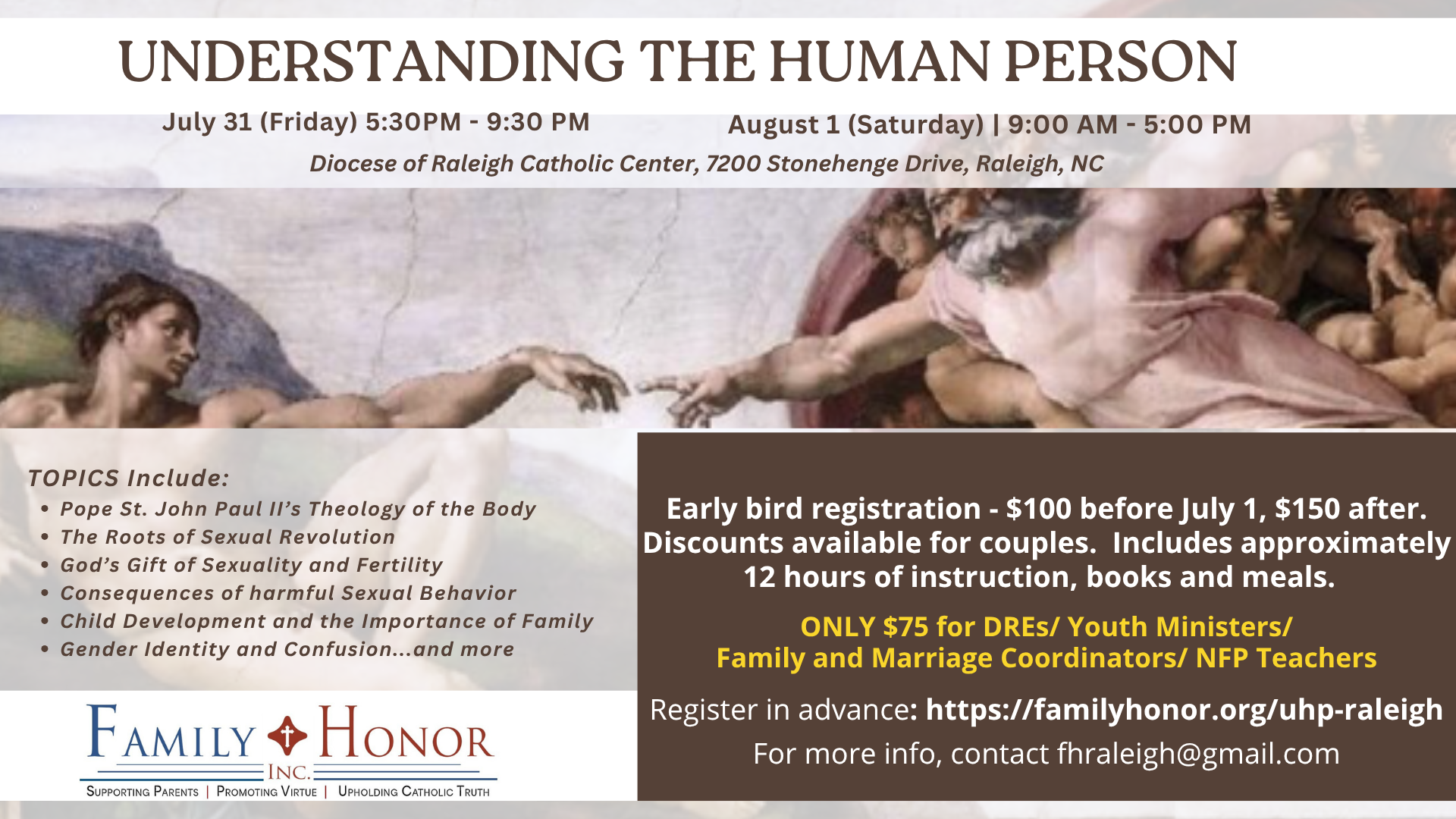 Family Honor will present its updated retreat program, Real Love & Real Life, for parents with their 7th or 8th grade child at St. Mary Magdalene Catholic School on March 13 and 14, 2026. This program builds a bridge for parents and adolescents to talk about love, life, God’s gift of sexuality, true worth, future dating and lots more.