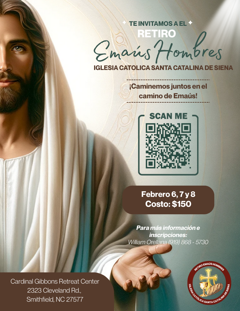 Con mucha alegría los invitamos a participar en el Retiro de Emaús para Hombres, que se llevará a cabo los días viernes 6, sábado 7 y domingo 8 de febrero de 2026.