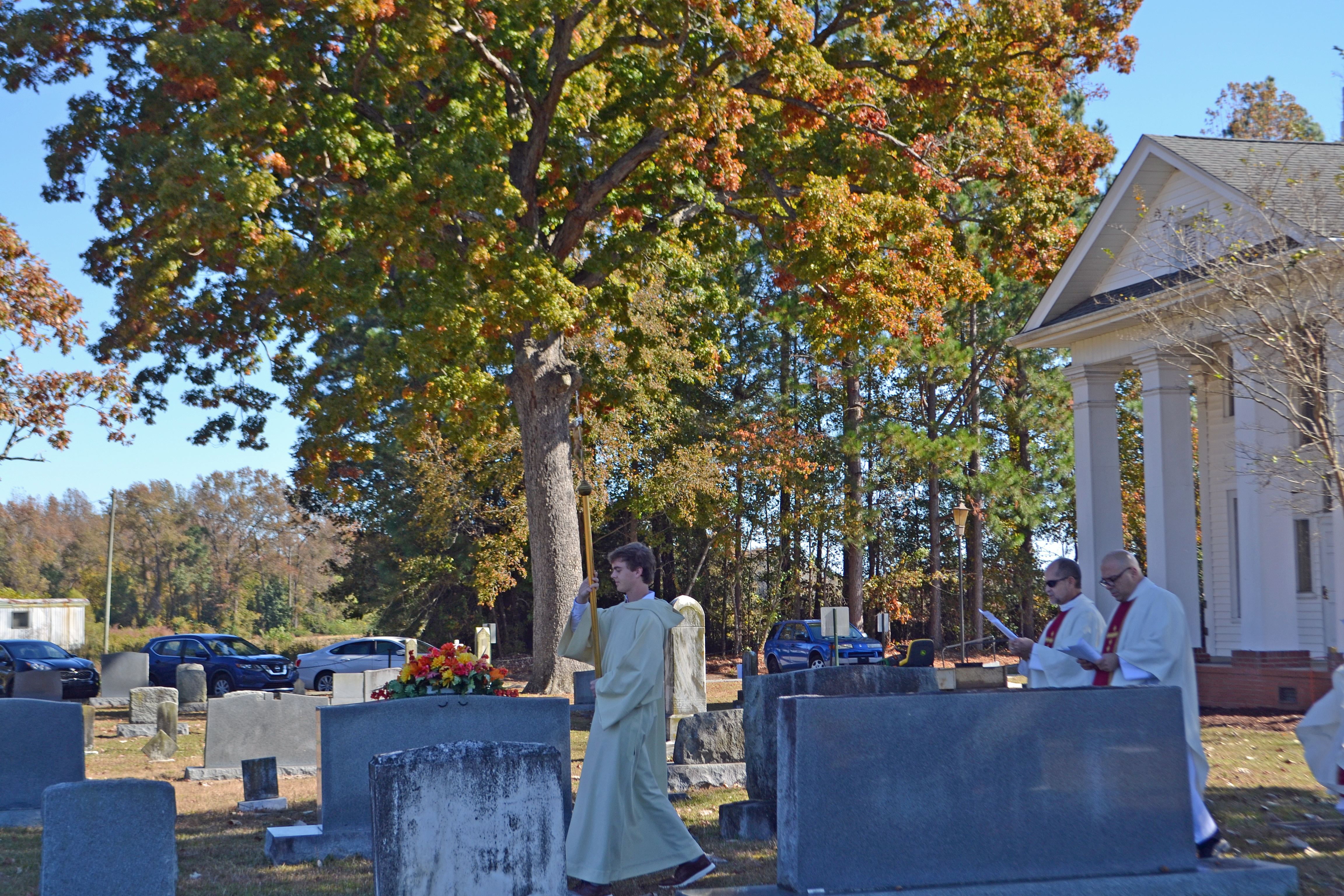 After lunch, Deacon George Kenan of St. Therese Parish in Wrightsville Beach led a rosary outdoors in the cemetery.