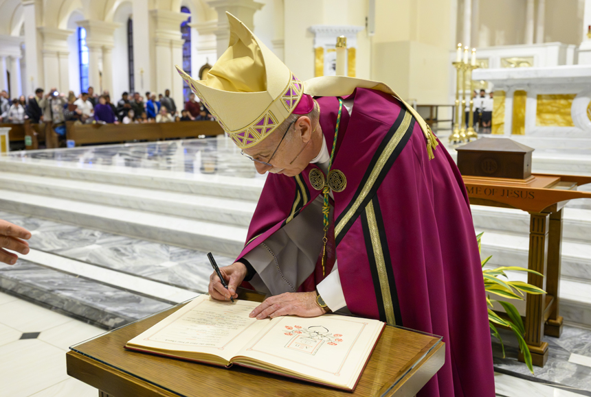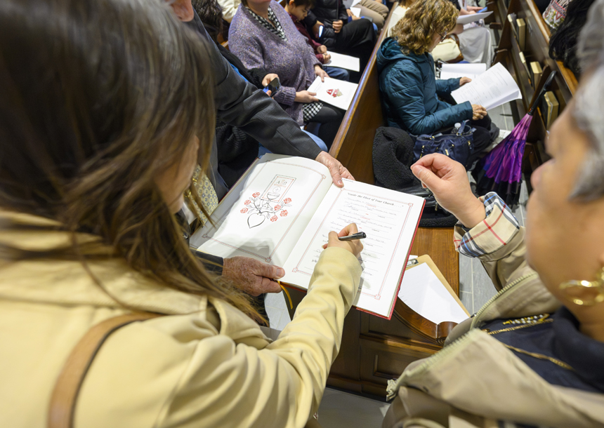 One representative from each parish was also present to present a Book of the Elect from their parish to the bishop for his signature. The rite took place during Mass after the homily.