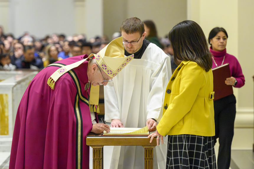 RALEIGH, N.C. — In the Church, the first Sunday of Lent is the day most bishops call or “elect” Catechumens seeking baptism at the Easter Vigil. It’s called the Rite of Election. It happens in dioceses all over the world and Feb. 22 it happened at Holy Name of Jesus Cathedral.