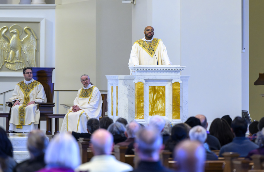 RALEIGH, N.C. – Father Kareem Smith began the homily by singing “Steal away to Jesus,” a Black Gospel song, on Martin Luther King Jr. Day at Holy Name of Jesus Cathedral.