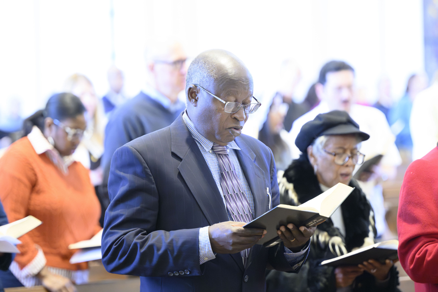 Some of those in the pews for Mass joined in, as the lyrics of the 1860s spiritual by Wallace Willis recalled bending green trees, trembling sinners, thunder and trumpet sounds.