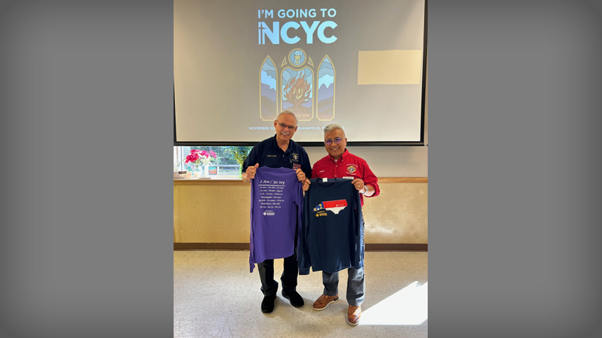 The diocese extended special gratitude to the North Carolina Knights of Columbus State Council, whose generous support is helping outfit pilgrims for the national conference. Sergio Miranda, state deputy, will attend the NCYC Encounter to present the council’s donation and speak about the Knights’ ongoing ministry and service to youth and families.