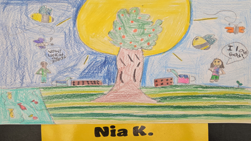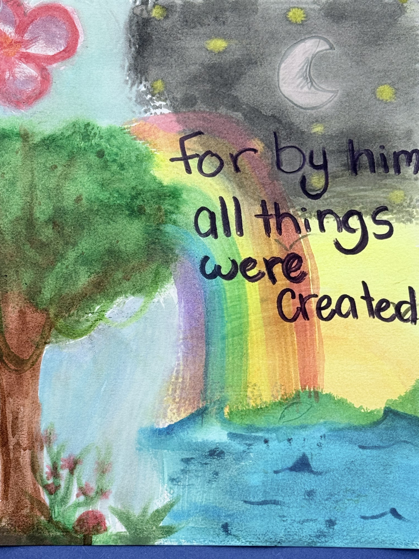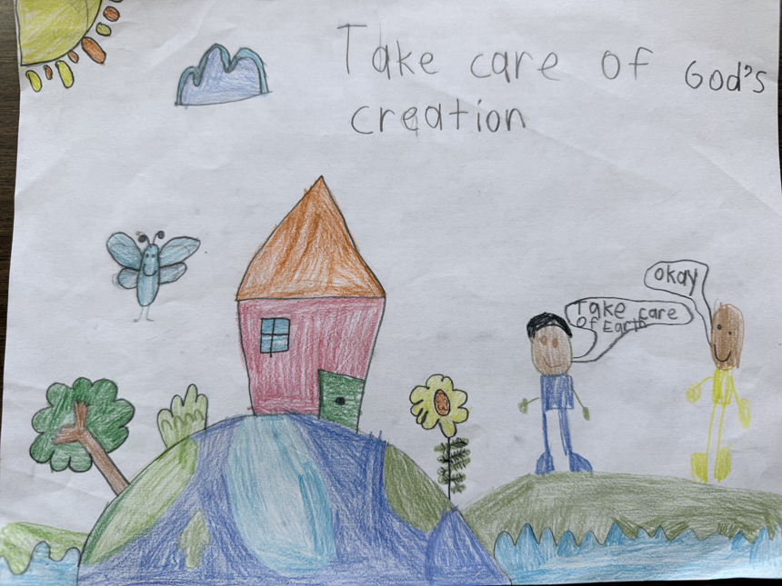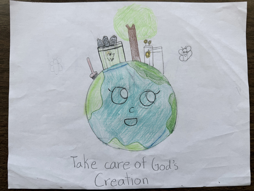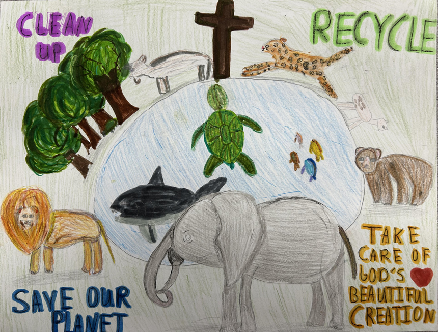 “I chose to have students participate … [because] it is an opportunity for students to think about how they can care for God’s creation, including people and animals, as well as our Earth’s air, water, earth, trees and plants. Students express their own ideas about how they can take action to care for our earthly world through their artwork which helps to develop both their artistic and communication skills,” said Our Lady of Lourdes School’s art teacher, Brenda Giandurco.