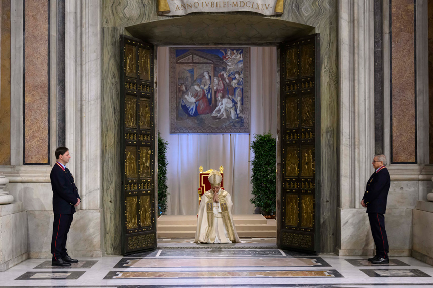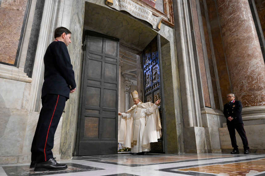 Above: Pope Leo XIV closes the Holy Door at St. Peter's Basilica at the Vatican Jan. 6, 2026, marking the end of the Holy Year. (CNS photo/Vatican Media)