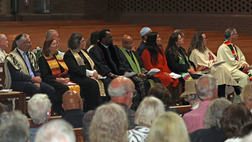 Father Tom Simisky, S.J. offered the welcome and greeting. Reverend Diane Faires Beadle, of St. Paul’s Christian Church, called the congregation to worship and Reverend Tom Watkins, of St. Andrews Presbyterian Church, shared the invocation. The service concluded with a reading from the Torah by Rabbi Eric Solomon of Beth Meyer Synagogue and a reading from the Quran by Imam Oliver Muhammed of the As-Salaam Islamic Center.