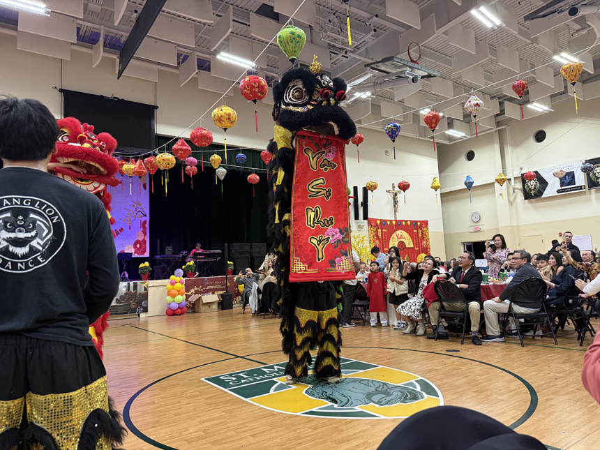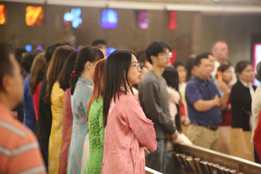 Following the liturgy, the St. Mark Catholic School gymnasium was transformed into a kaleidoscope of color and sound. The program featured a high-energy lion dance to ward off misfortune and welcome prosperity; star-studded performances from renowned Vietnamese-American singers Hà Thanh Xuân and Wendy Nguyễn headlined a musical program that included several live bands and regional artists. An array of traditional Vietnamese cuisine was shared among parishioners and guests.